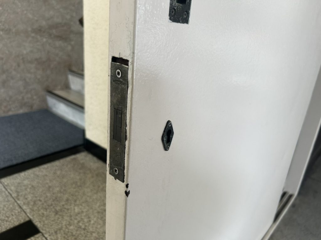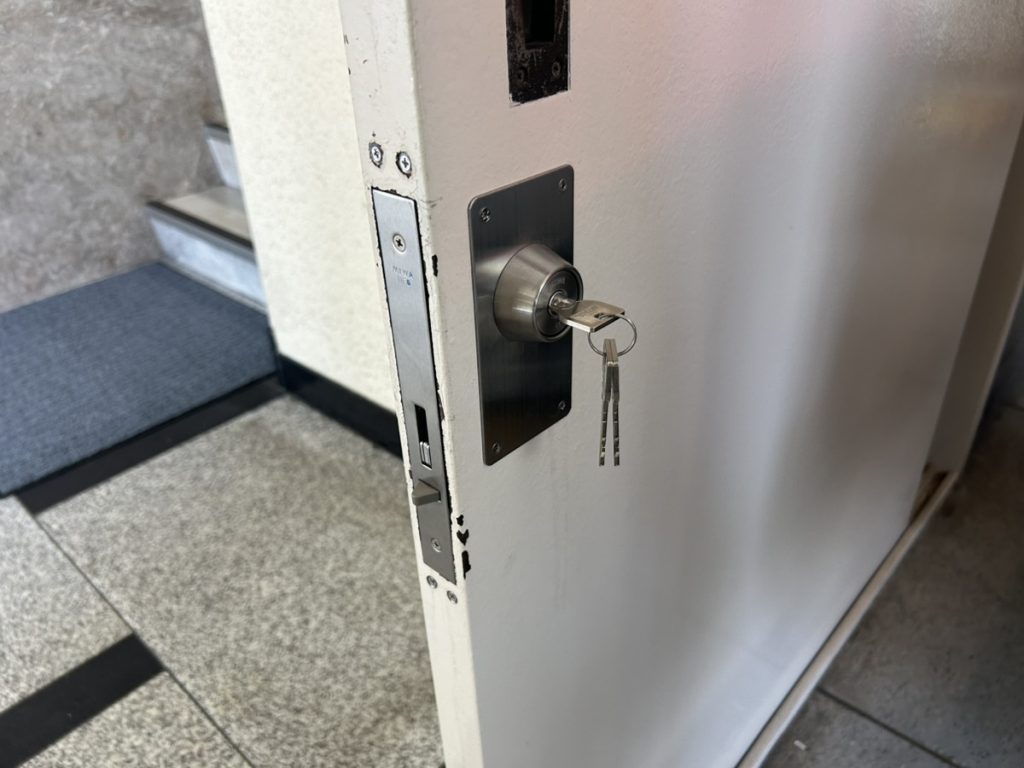 TOP ▸ 日々の実績 ▸ 引き戸錠 加工交換 2026.03.26 引き戸錠 加工交換 都内のビルにて引き戸の鍵が古くて故障をしてしまったので修理依頼がありました。 既存の商品は売られていないものでしたので、美和ロックの錠前に交換をいたしました。 既存の鍵が古くメーカー等が不明でお困りの際でも扉に加工を加えることで交換可能となる場合が多いです。 お気軽にご相談ください。 日々の仕事実績一覧へ戻る